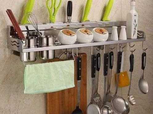 橱柜尽量多做一些吊柜或是直接做高柜,把复杂的厨房用品分类收纳好,这样厨房就看起来整洁得多。我们也可以将墙面空间充分利用,增加搁板、挂件用于收纳,这样只要将大件的厨房用品摆放在正确位置后,将小件物品随手挂在墙面隔板上,也不会影响美观度。