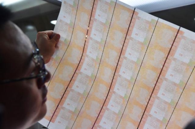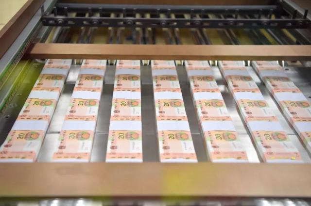 第五道工序是裁切、检封与装箱。记者在现场看到,人民币并不是在初印环节就是流通时的大小,一大张上横五竖七排列共35小张人民币