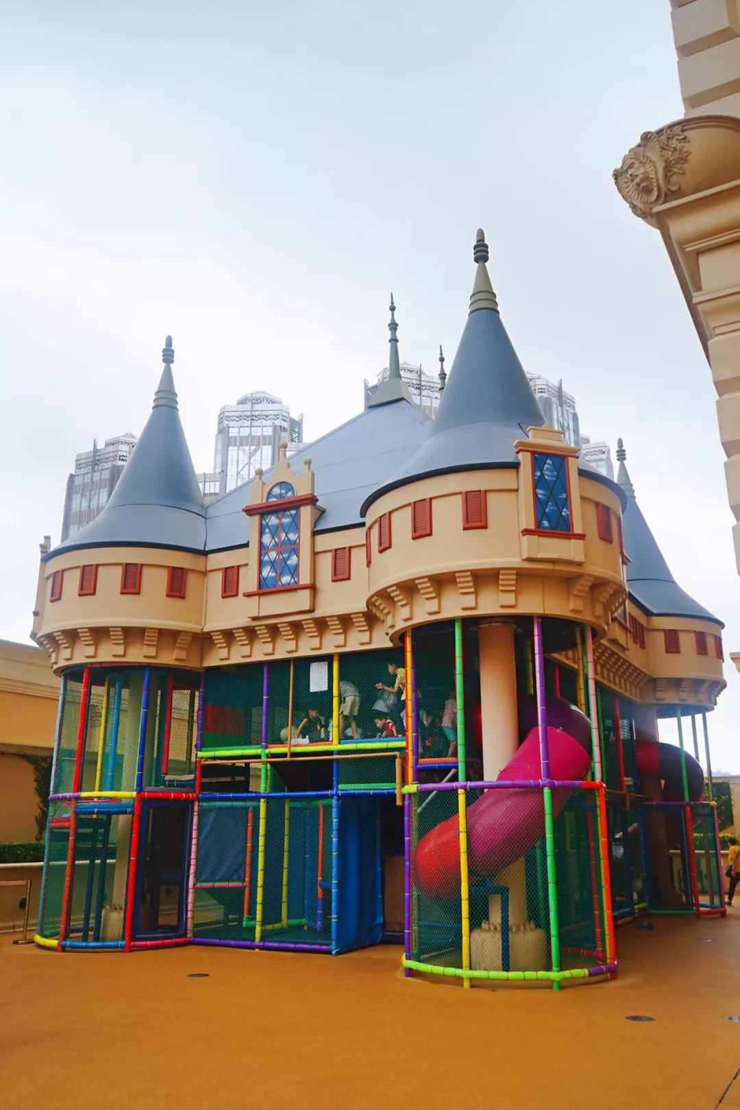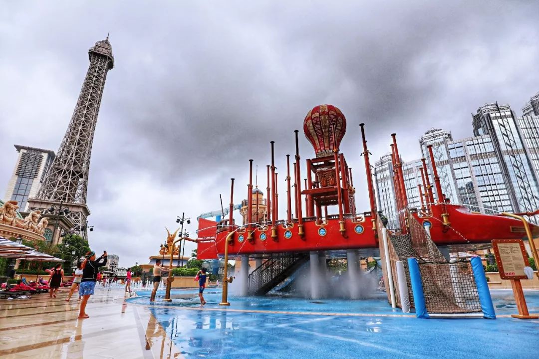 巴黎人水世界设有13米高的玛丽安托瓦内特皇后之塔、螺旋式的水上滑梯、蒙马特山红色风车和长达15米的凡尔纳飞艇、装配有翻斗孟戈菲吊篮的红白热气球、攀爬网、摇摆木桥等,想要轻松玩水或挑战惊险都能畅快尽兴!