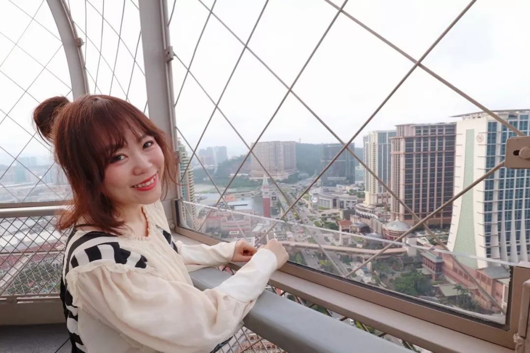 登上巴黎铁塔37楼的观景台,人妻cash俯瞰着宏伟的巴黎人度假村、繁华的金光大道和整个路氹,舒爽得笑颜如花~