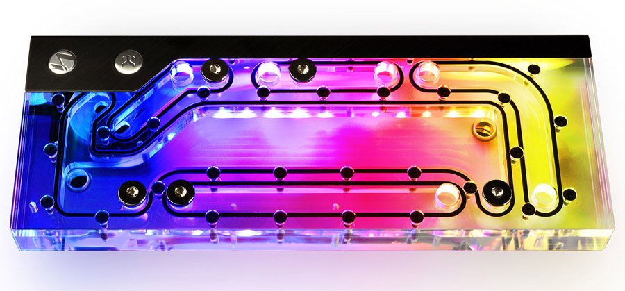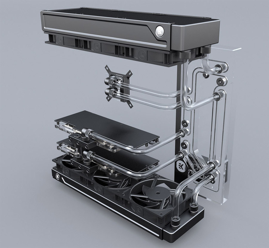 大家应该看过一些MOD主机里面会用到水道板,用了水道板之后走管明显会变得更为简洁,而且通过开孔位置的调整,可以让水管变得整整齐齐的,非常好看,然而这些水道板多数是MOD选手自己定制的,一般玩家想自己弄一块来玩是挺麻烦的,毕竟每个机箱的需求都不一样,现在联力与EKWB合作,为O11D和O11D XL机箱打造了专用的水道板。