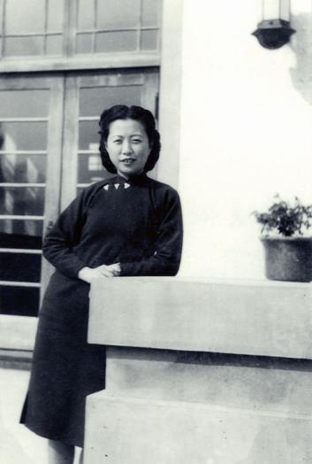 1948年,沈安娜,摄于南京国民党中央党部办公楼大门前