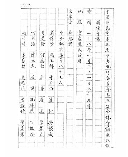 1939年1月21日,沈琬(沈安娜)记录的国民党五届五中全会的有关文件(台湾国民党史馆保存)