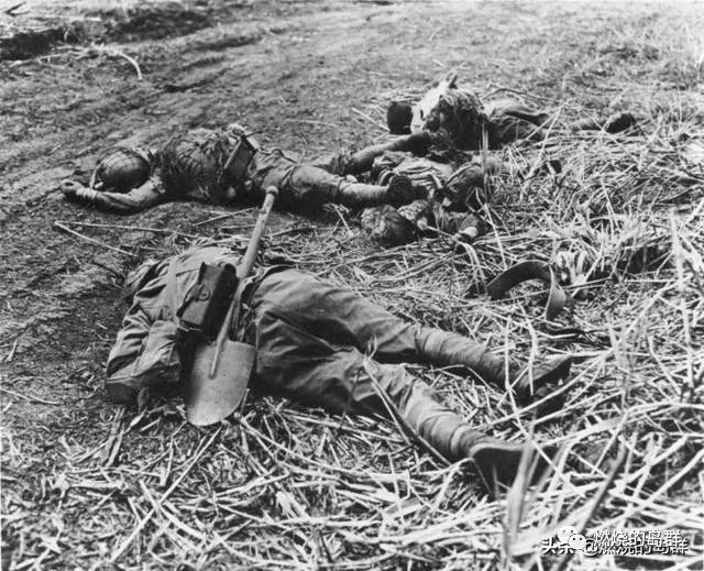 图34. 美军拍摄的在123高地附近被击毙的鬼子,手上还携带开路用的工兵铲