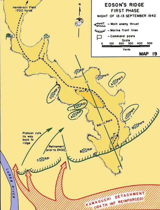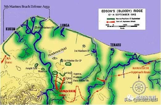 此时川口主力已经出发,后方补给兵站就被端了。第17军军部得知后几乎就要叫停川口,最后还是让川口“自行决断”。跟一木先遣队的覆灭一样,川口支队就这样提前被美军获知。但是范德格里夫特将军认为日军仍会沿着海岸线进攻,反而是埃德森少校认为机场南面更值得重视,他以“休整”为名争取到南部山岭布防,此举最终挽救了机场,这也是埃德森少校此战深受好评的理由之一。
