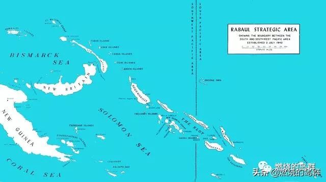 图12. 所罗门群岛图,注意中间竖线正是美军西南太平洋和南太平洋战区的分界线