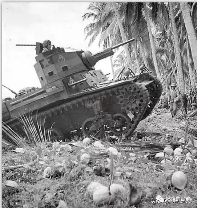 图37. 瓜岛上的M3轻型坦克,似乎属于第1营A连,地上是椰子不是人头,貌似摄于歼灭一木支队时