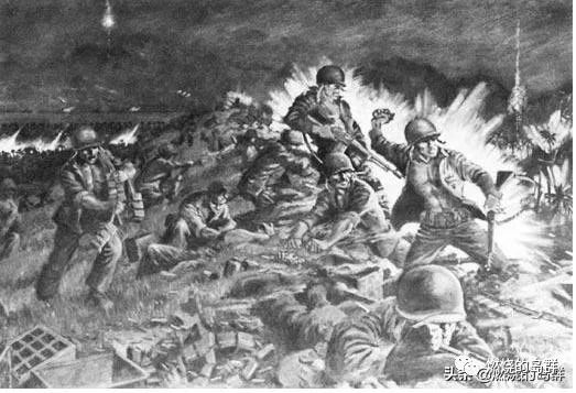 13日晚21时,山岭南面突然响起了一片声嘶力竭的“板载”嚎叫声,如同23天前一木先遣队的猪突方式一样,缺乏炮火压制准备的鬼子们只在掷弹筒和机枪的掩护下发起肉弹冲锋。当天是个无月光的暗夜,美军临时构筑的工事瞬时险象环生,虽然得到师属炮兵的大力支援,但蜂拥而至的鬼子仍然取得了一些进展。双方在阵地上多次爆发白刃战,这在美军中是极为罕见的。