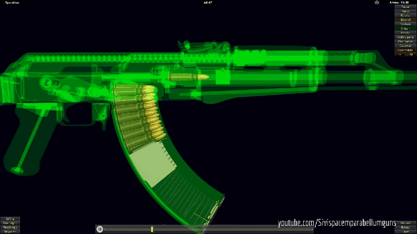 而类似于AK47那个类型的,属于活塞导气了,长行程活塞。这种结构,枪机和活塞连在一起,共同后座复进,后座抛壳,复进装填,然后击发。而短行程活塞呢,就是活塞只随着枪机框运动一小段距离,然后枪机后座把壳抛出去,然后通过复进簧复进,这种动作小,精度比长行程活塞要高。