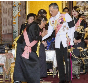 早先泰国媒体有报道,玛哈国王与素提达的注册结婚仪式,是在诗琳通公主的见证之下完成的,可见公主对于这位新嫂子还是认同的。哥哥的婚姻是王室的大事儿,新王后地位尊贵,素提达能与玛哈国王修成正果,公主的看法也是很重要的。在国王加冕仪式之后,玛哈改封诸位王室成员们的封号,诗琳通公主与朱拉蓬公主都被封为“王妹公主”。