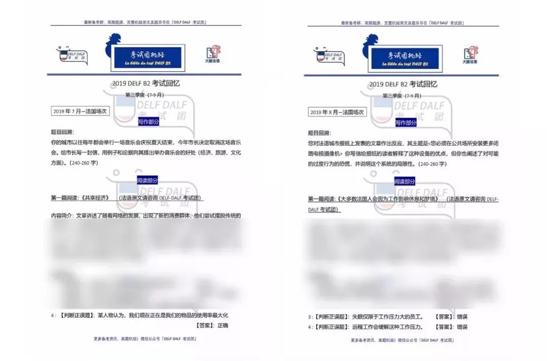DELF-B2第三季度机经总结
