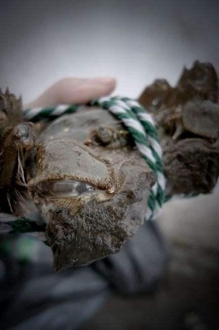 其一,挑蟹壳壳贝,墨绿色的大多体厚坚实,黄色的则大多较瘦弱。如果看到"金毛金爪"的,则一定不要放过。其二,看肚脐肚脐。突出则脂肥膏满,凹现则大多是膘体不足。其三,观蟹足足爪,有毛的一般都膘足老健,无毛则大多是体软无膘。其四,识雌雄。肚脐圆形为雌蟹,肚脐尖形为雄蟹。其五,看生命力。用手将蟹翻转身来,能迅速用蟹足弹转翻回的,生命力强;不能翻回的,则生命力差,存放的时间不能长。