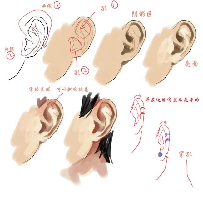 总而言之,我们不论是在画眼睛还是耳朵,都要从最基础的结构出发,保持结构意识。然后再加一些其他的东西。希望对大家有所帮助。