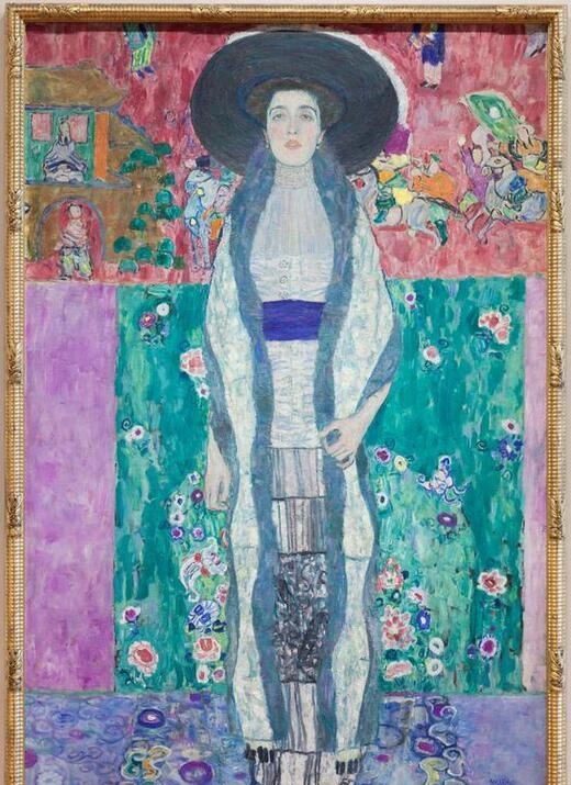 古斯塔夫·克林姆特的画作有三大明显的特点:一是大量金色的使用,这使得他的画面十分华丽;二是他喜欢在画面上做大量的装饰,那些抽象的装饰花纹更是提高了他的作品的华丽程度;三是他喜欢刻画女性形象,他用自己的画笔描绘了各种各样的女性,当然他还有一位缪斯女神,她就是他的赞助人阿黛尔女士。他的那幅最著名的《阿黛尔·布洛赫-鲍尔肖像》便是为她所画。