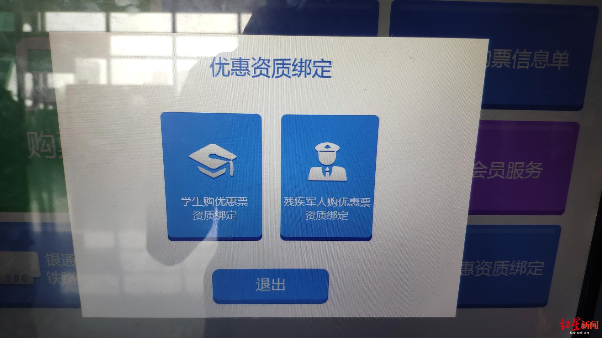 9月2日,红星新闻记者来到了成都东站,现场咨询了自助取票机取不了学生票的问题,工作人员表示,学生票要先绑定学生证才能取,不绑定取不了。“自助售票机上点击优惠资质绑定,选择学生购优惠资质票绑定,刷学生购票优惠卡”。