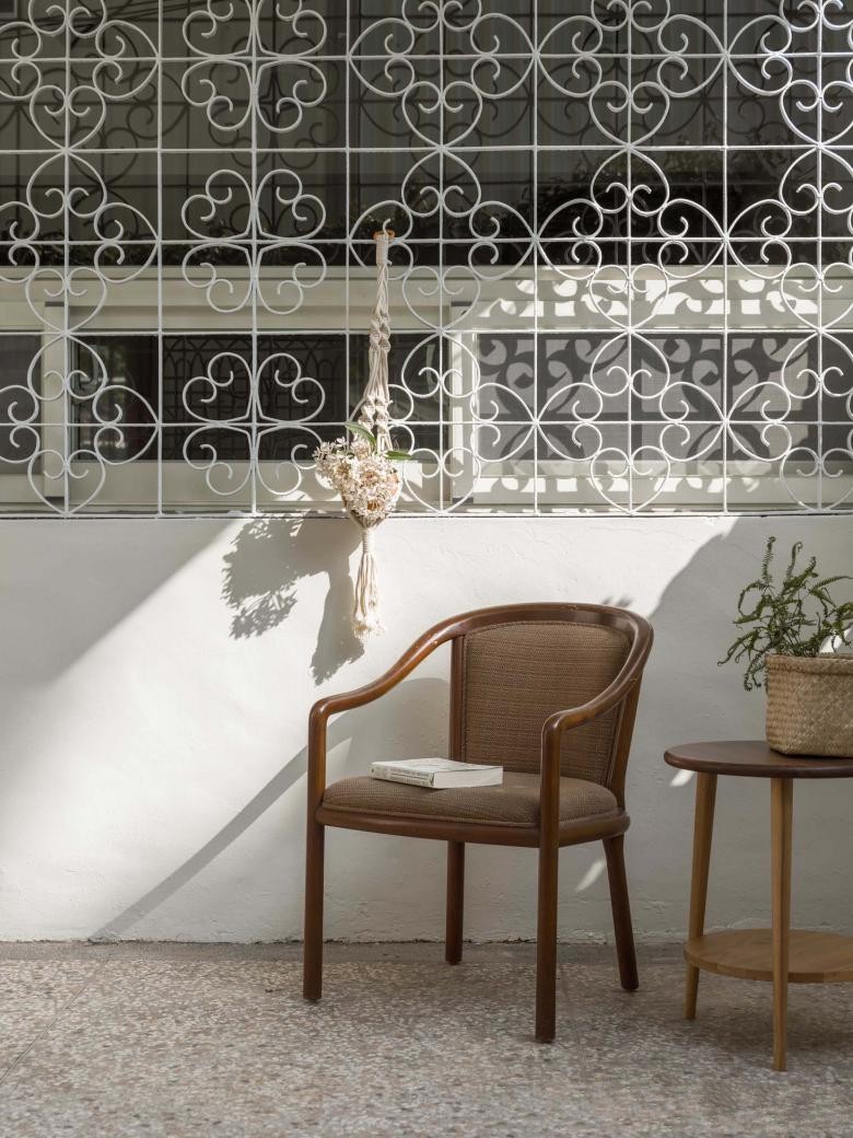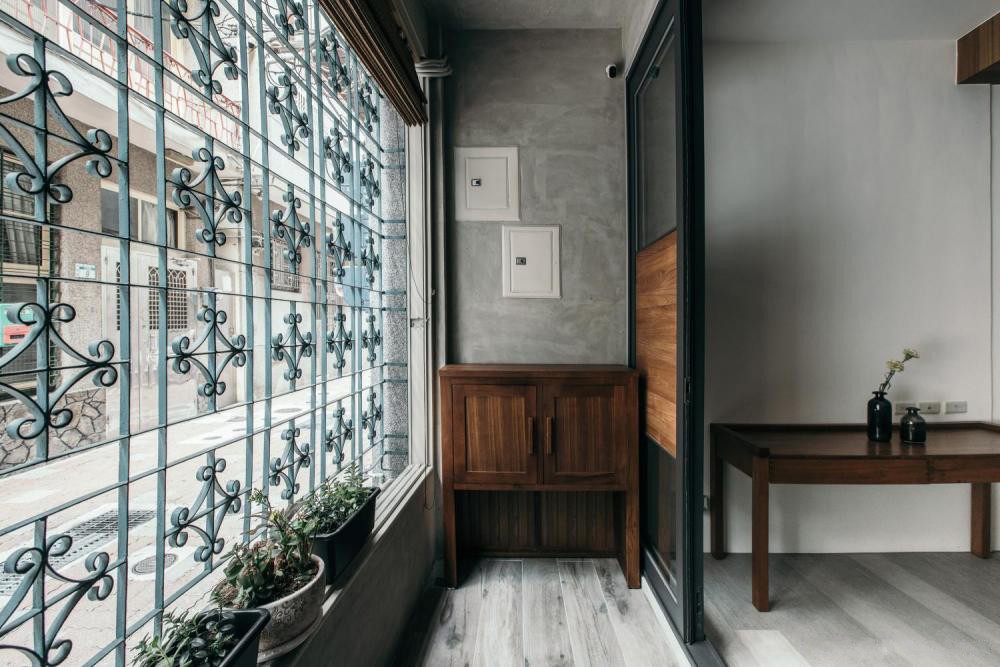 铁窗花是以前旧建筑常出现的元素之一,常用于低楼层的窗户之防盗功能,而随着时代演变,铁窗花逐渐消失,若你家还留有这种具有历史意义的铁窗花,可以试着除锈、重新整理并漆上复古蓝绿色,搭配古色古香的深木色矮柜,让家中阳台顿时有了回忆端景,进门仿佛回到了乡村里的外婆家。