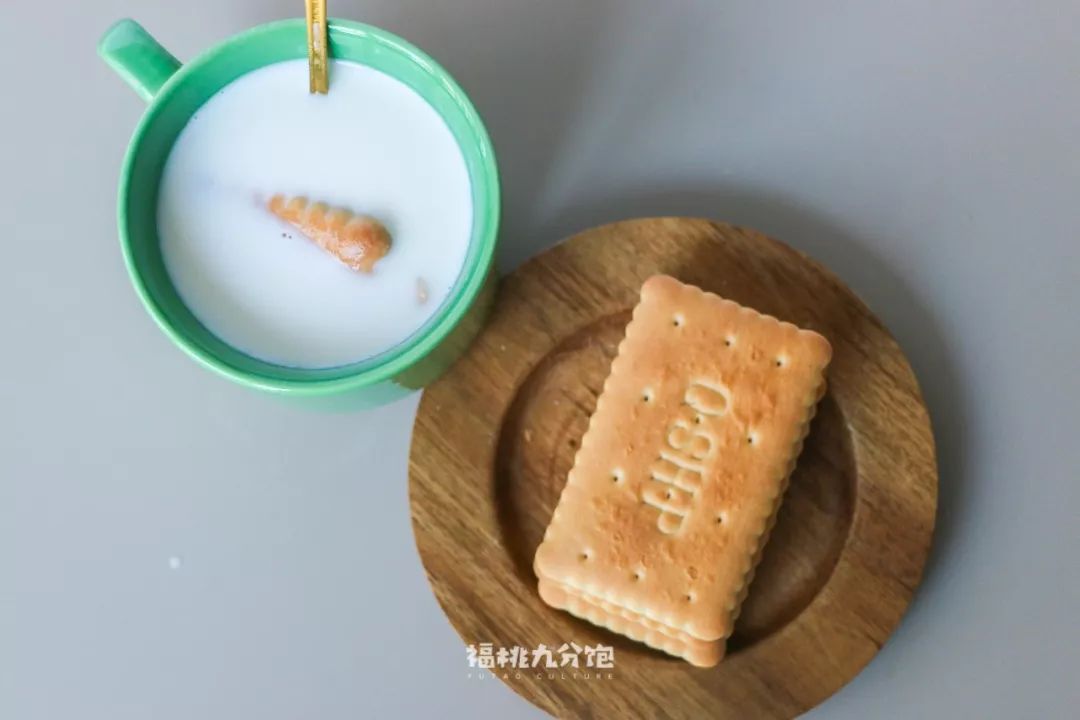 饼干蘸牛奶,