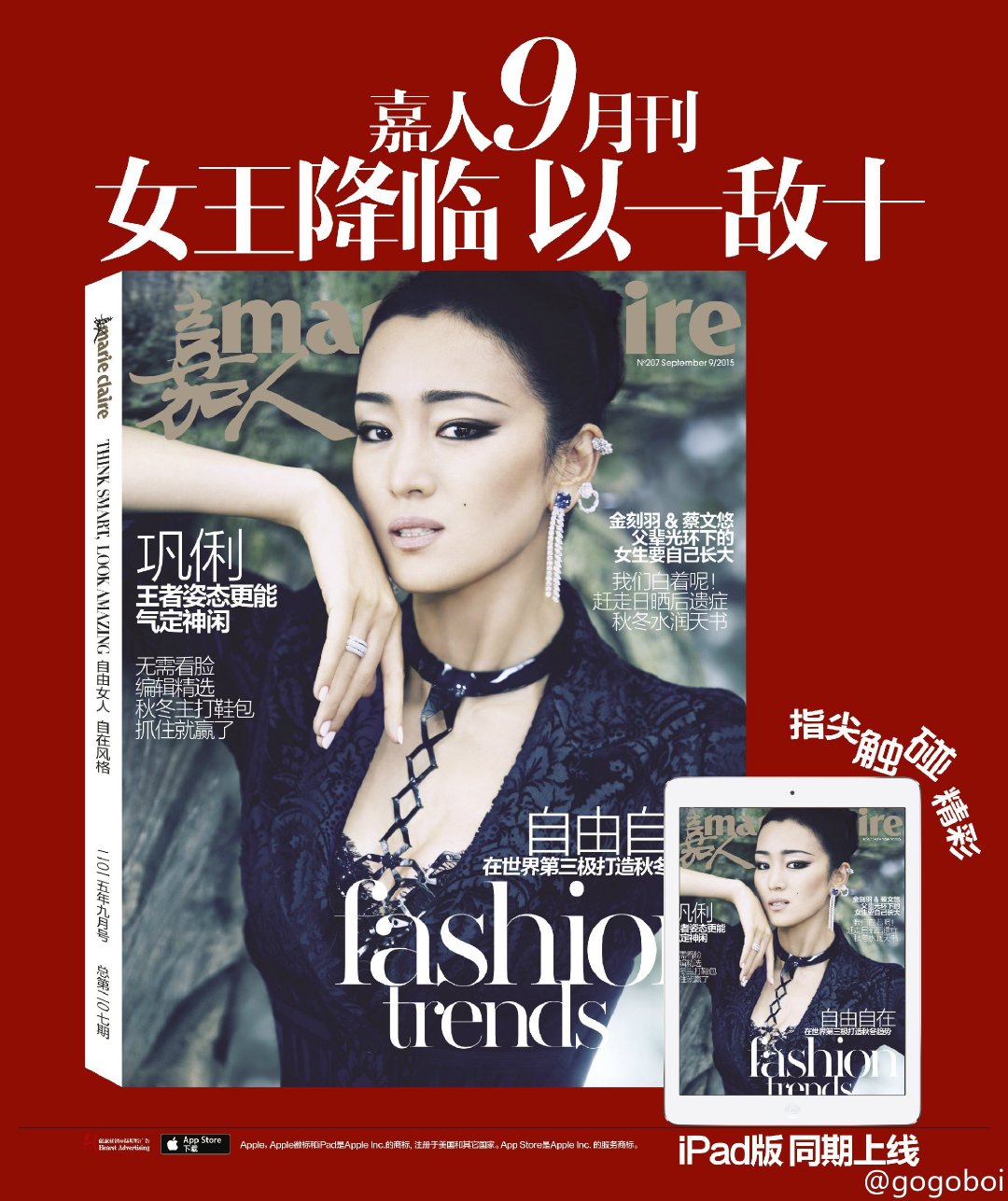《嘉人 marie claire》此次的封面依旧邀请到了巩俐。这是“巩皇”第五次登上嘉人封面,也是第四次坐镇“金九”。本次金九封面呼应她即将进组开拍的电影《中国女排》,照片中的巩俐在排球场和更衣室等场景中身着运动装,眼神沉静、气场强大。