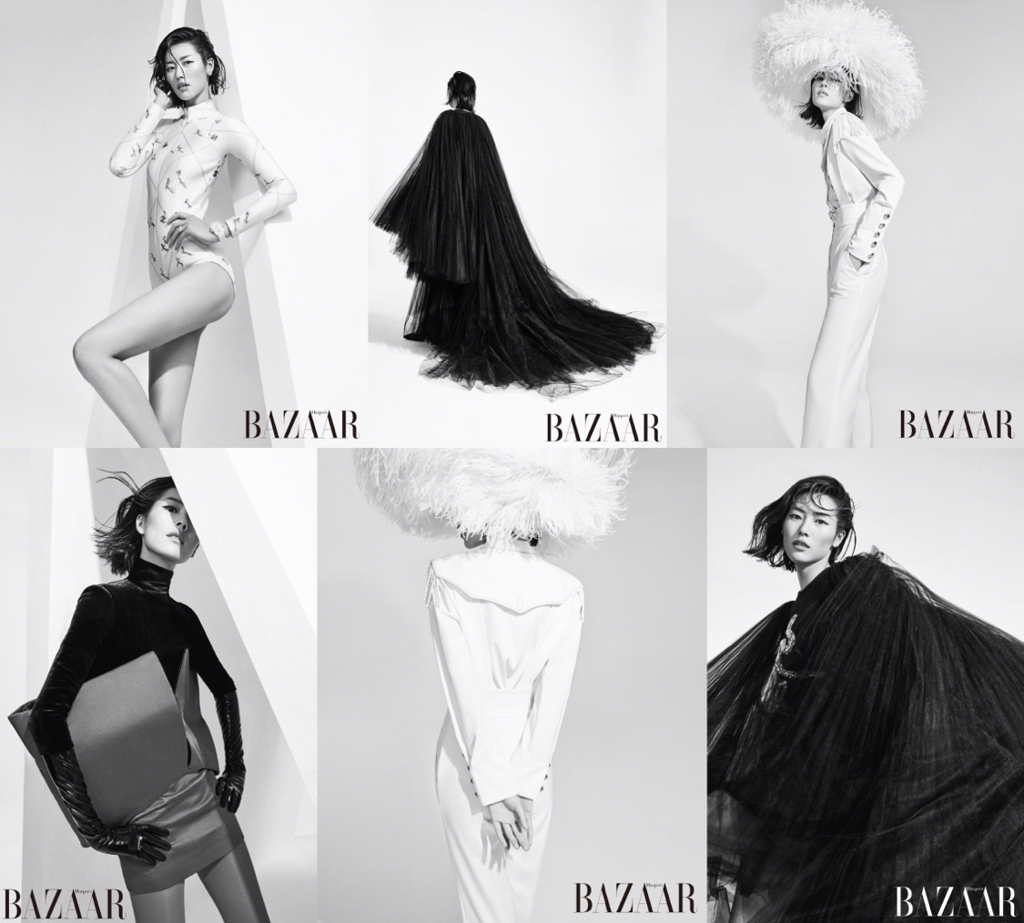 《时尚芭莎BAZAAR》九月刊下则是以中国超模刘雯作为单独的封面人物。黑白的极简风与九月刊上形成了极大的反差。在这组封面中,刘雯身穿泳衣出镜,主题则为:自由盛装。