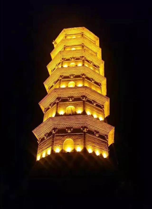 该塔为楼阁式砖塔,七级八面,高39.66米,每层辟四门洞,真假相间,变化有序,整个塔势挺拔俊秀。每年春季总会飞来一群胡燕,嬉戏于塔顶周围,人称“胡燕朝塔”,龙降之地,自是诱人,达官显赫纷纷来谒,文人墨客接踵来游,韦应物就是其中一位。