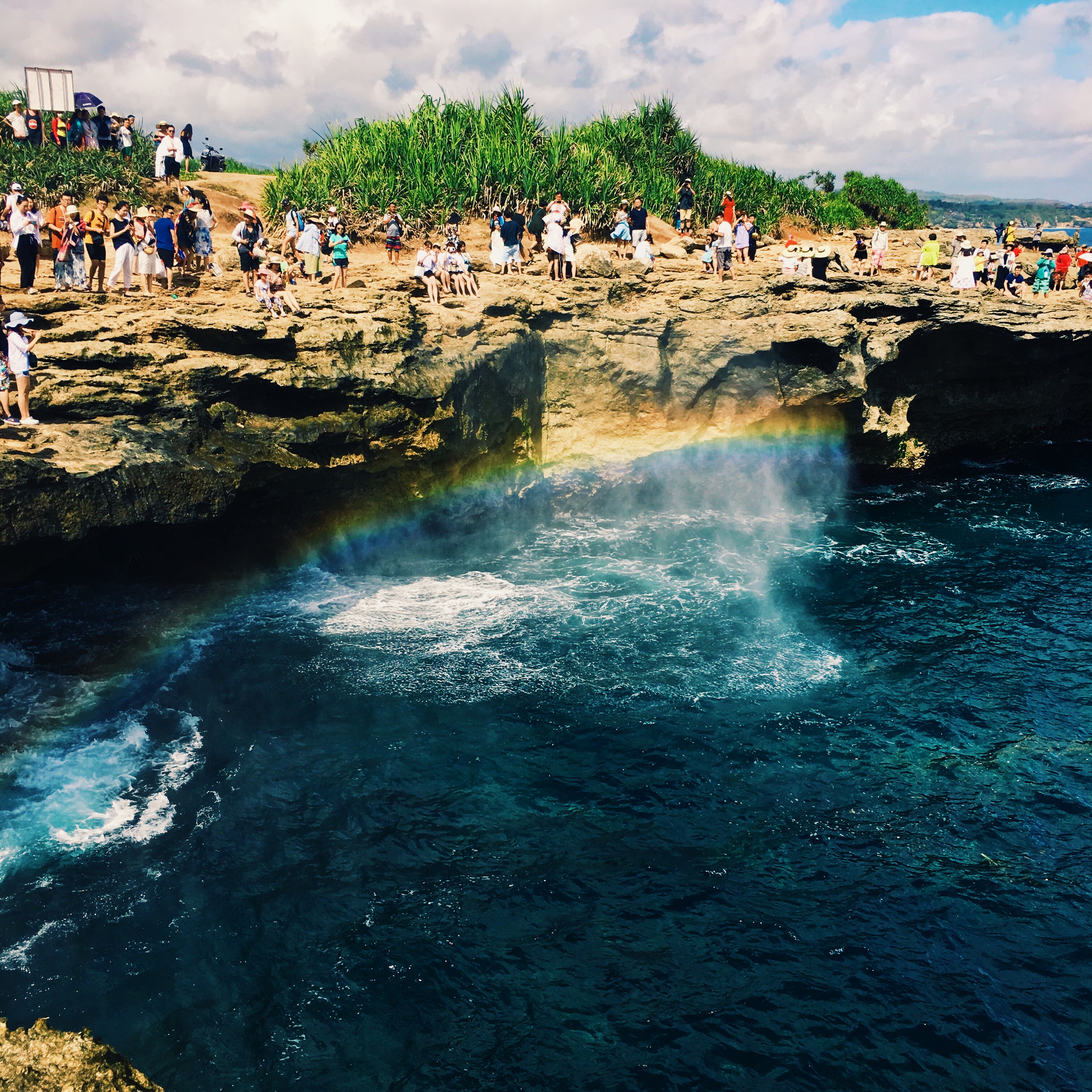 资料显示,蓝梦岛位于巴厘岛东南方向,岛上有一处被称为“恶魔的眼泪”的网红景点。在该景点岸边的崖石下方,有两个巨大的空洞,海浪涌来时,气流和海水剧烈撞击后会激起十多米高的水柱,吸引不少游客慕名前来。