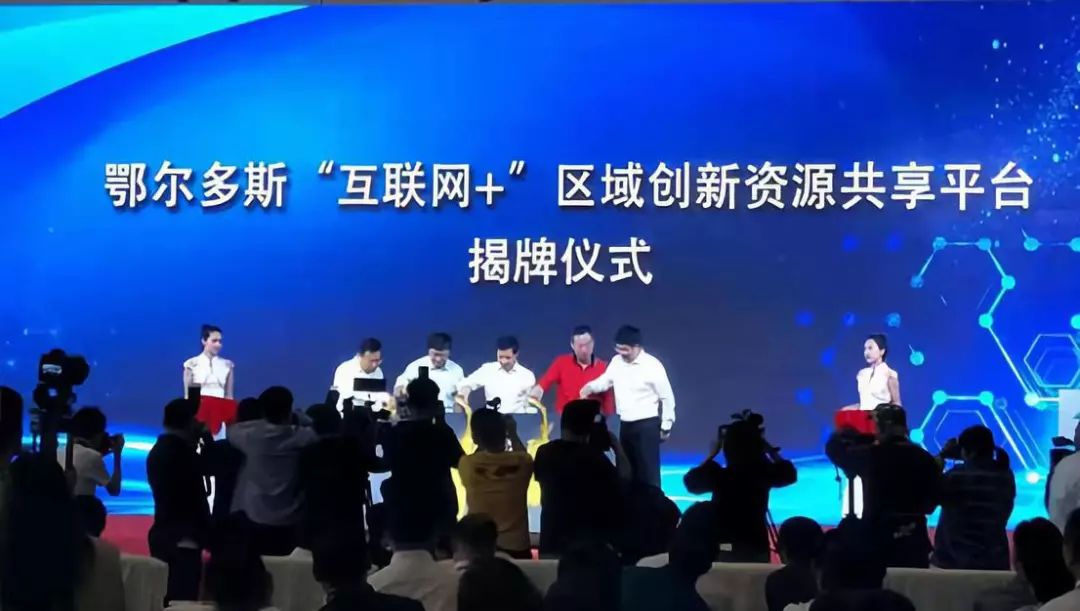 上午10点,自治区人社厅人力资源公共服务中心主任谢遵国,鄂尔多斯市委常委、副市长倪嘉宇,鄂尔多斯市委组织部副部长张鹏程,鄂尔多斯高新技术产业开发区党工委副书记、管委会主任张仲平和猪八戒网集团副总裁兼八戒研究院院长周勇上台共同为鄂尔多斯高新区与八戒科技服务打造的全国首个高端人才引领的“互联网+”区域创新资源共享平台上线揭牌。