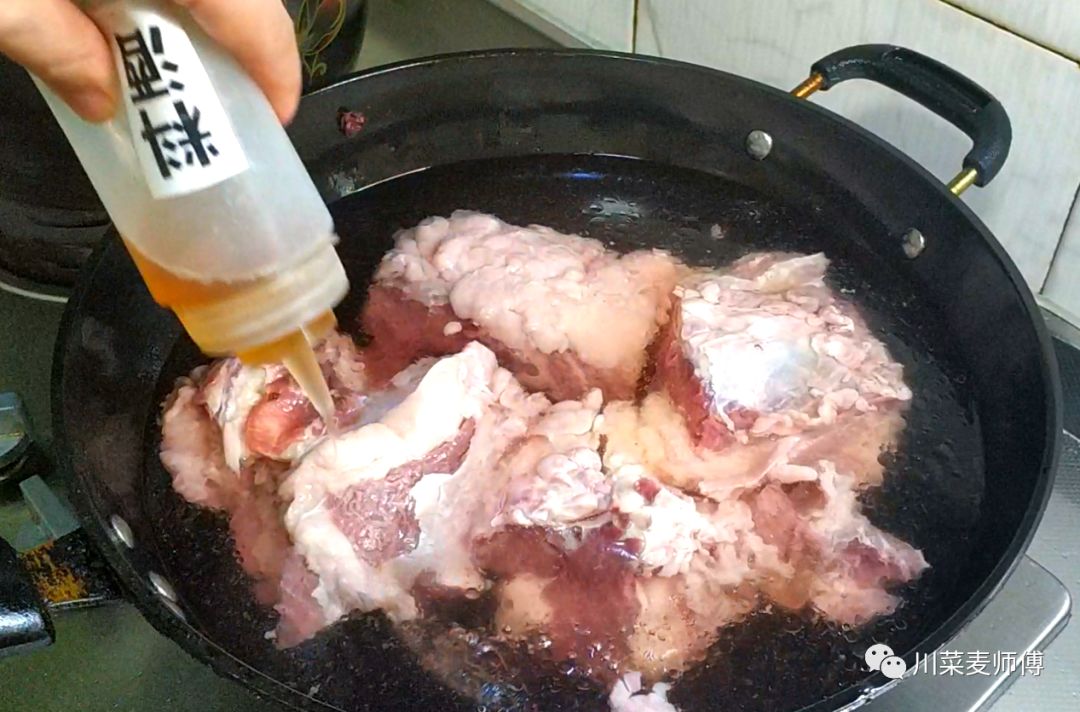 ②:牛腩冷水下锅,加料酒适量。可以适当多加一些,料酒在挥发的时候会把牛肉的腥膻味带走。不会留下酒味!