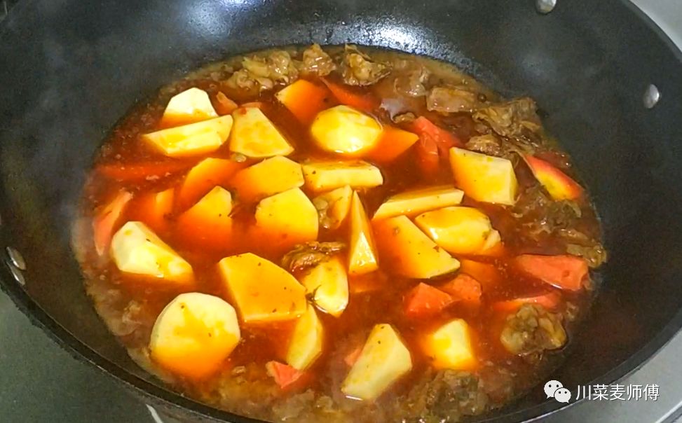 归根结底有两个要点!第一要点要把牛肉的腥膻味去除后将其鲜味激发出来,其次牛肉炖熟后与土豆混合炖制,让土豆的淀粉渗透到牛肉内部去,同时用牛肉原汤煮出来的土豆也更加鲜香。