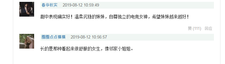 从小配角到现在的“荣耀女神”,赖雨濛这次完成了女演员的华丽蜕变。我相信只要把这份努力和用心一直坚持下去,未来还会更好。