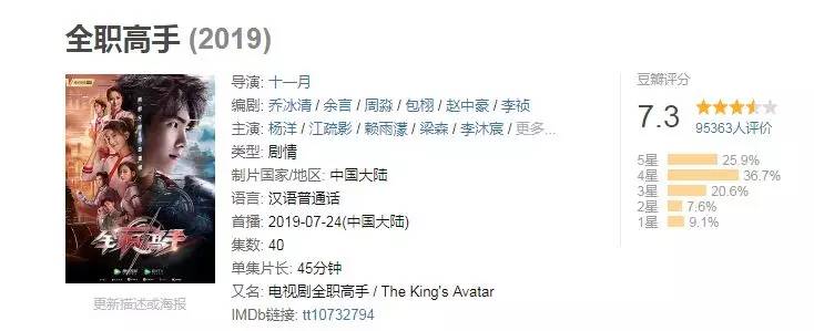 我非常理解这种磕上头的感觉,毕竟《全职高手》可是国内首部以电子竞技为题材的青春剧,而且拍出了观众最期待、最想看到的电竞青春。