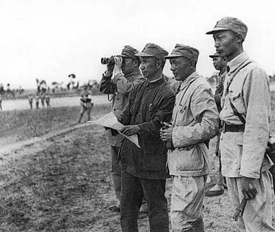 而事实上,此照片中手举望运镜的是华东野战军司令员陈毅,此照片拍摄时间是46年3月,在当年的特纵司令员陈锐霆回忆录上有此照片及注释: