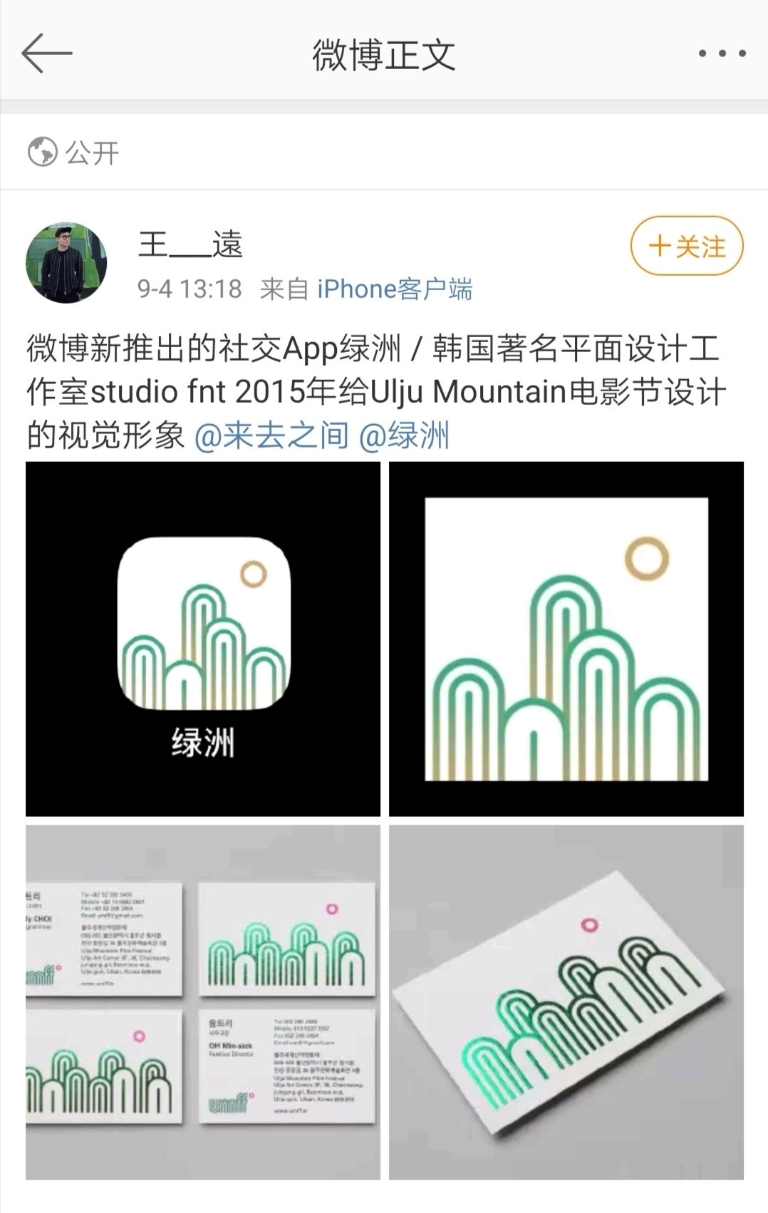 深蓝财经9月4日讯,针对有网友爆料称新浪微博新推社交软件“绿洲”采用的图标设计,与韩国著名平面设计工作室studio fnt 2015年给Ulju Mountain电影节设计的视觉形象高度雷同,疑似抄袭一事。