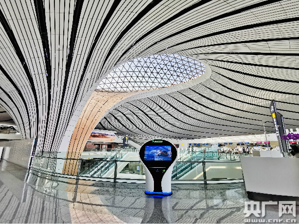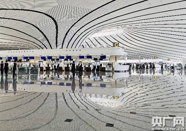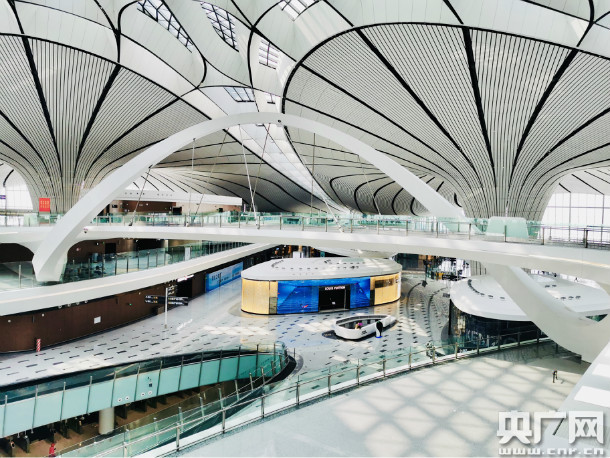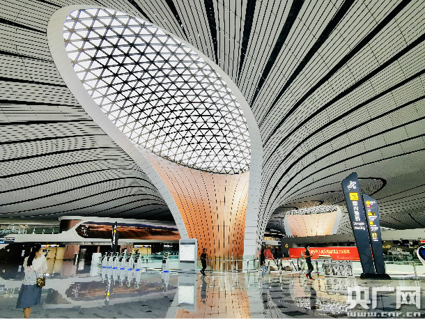 图为北京大兴国际机场内部。(央广网记者 高艺宁 摄)