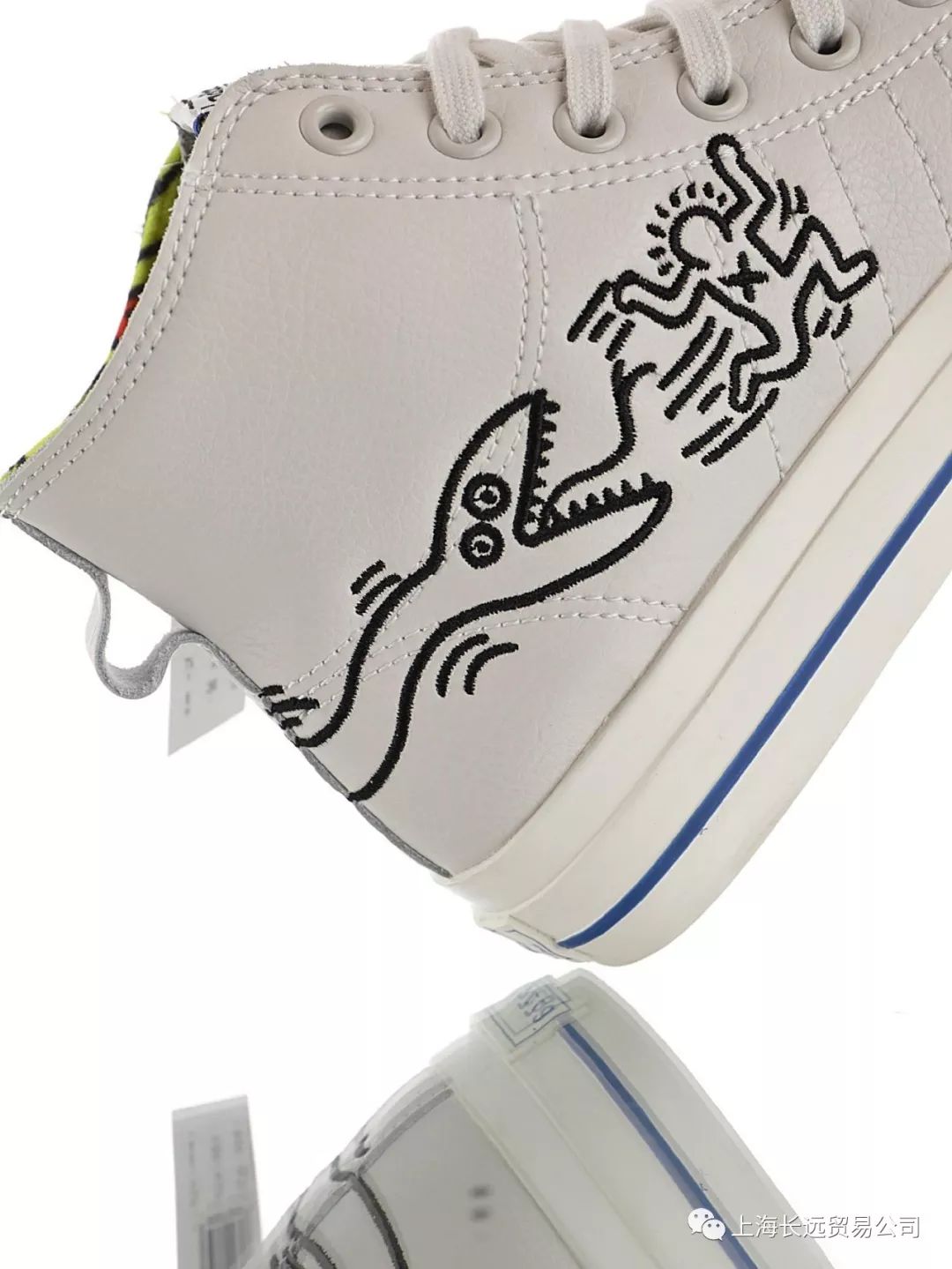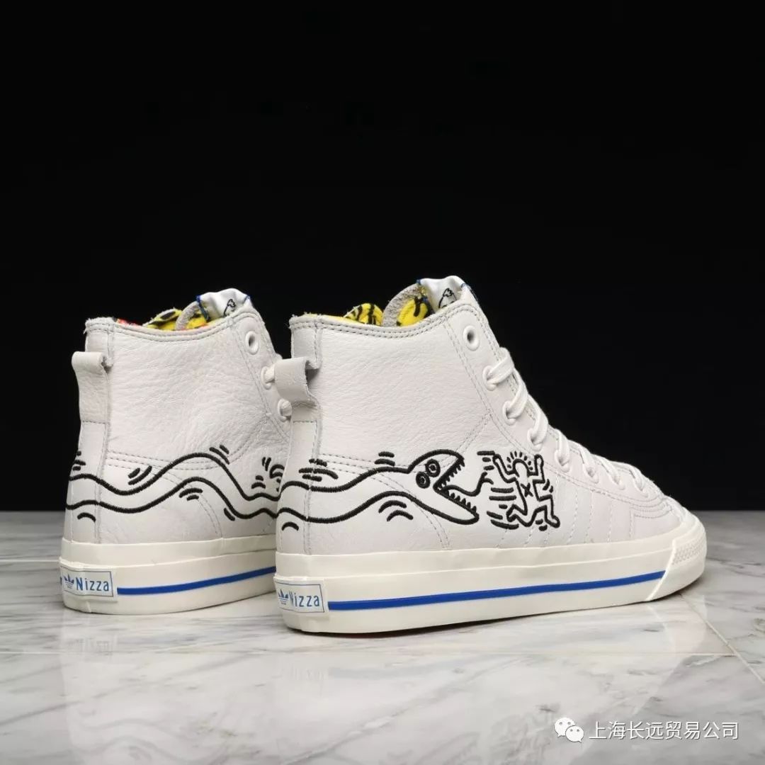 艺术天才Keith Haring x adidas Nizza Hi RF"Crystal White/Blue"半截式包胶鞋头校园高帮休闲运动皮革板鞋“皮革浅灰蓝黑涂鸦”EE9297 尺码:36 36.5 37 38 38.5 39 40 40.5 41 42 42.5 43 44 ...... 伟大的艺术天才 Keith Haring 出生于1958年,逝世于1990年,他被视为纽约涂鸦艺术的领军人物,他的涂鸦作品是世界艺术宝库的重要组成部分。虽然他的艺术生涯短暂,但他的作品却有着惊人的创造力。他一生致力于让艺术回归大众,继去年优衣库推出联名系列之后,此番 adidas Originals 也推出了联名系列。系列由Stan Smith,Nizza Hi 和 Rivalry Hi 鞋款组成,每款鞋都注入了 Keith Haring 涂鸦风格的艺术图案。粗轮廓线以及空心的抽象人物,辨识度极高,独特的艺术风格又充满玩味。
