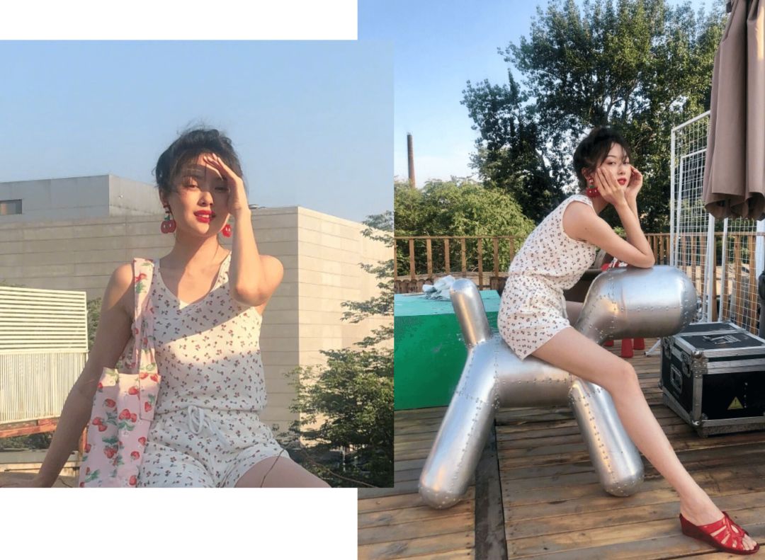 碎花穿不好容易变“村花”,但是晚晚就是喜欢挑战碎花图案。