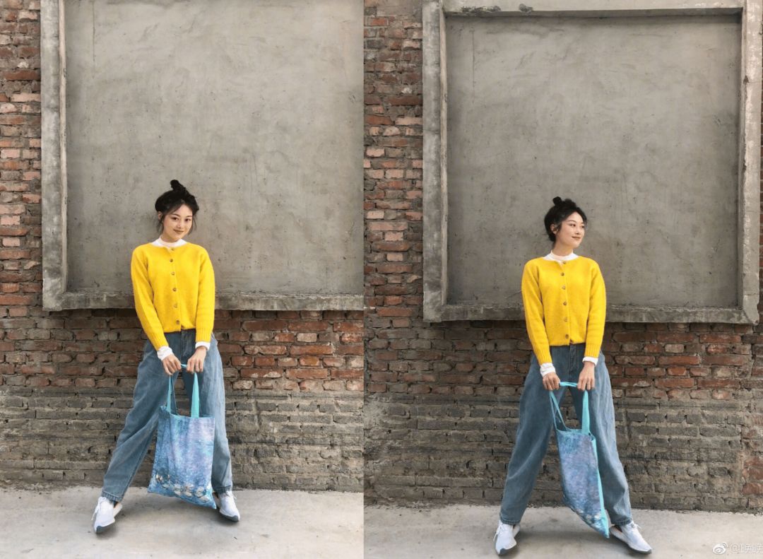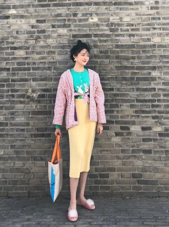 另一种搭法就更减龄了,黄绿虽说是亲兄弟,但是搭上粉色就唯独晚晚能想到了吧?