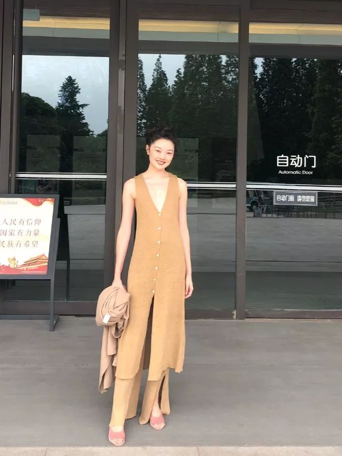 看来晚晚真的很爱针织面料啊,同色系的针织裙+针织外套,安心穿绝对不会踩雷,瞬间打造优雅lady的形象。