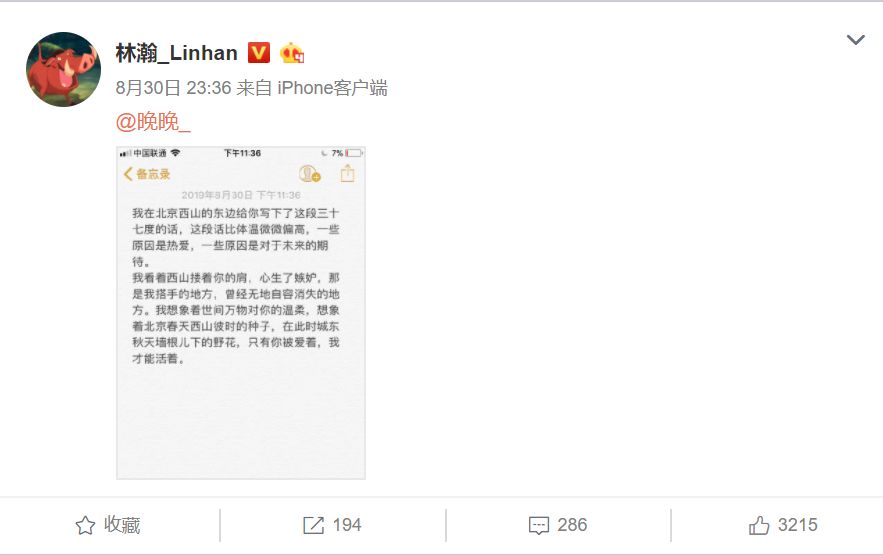 微博上经常给晚晚发“小情书”,每次有黑子攻击晚晚他都会出来保护她,两个人的互动真是很甜蜜了。