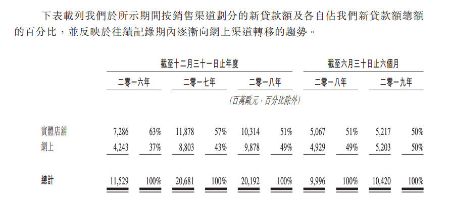 另外,招股书显示,截至2019年6月30日,捷信集团新增贷款来自线下实体店和线上渠道各占50%,较往期记录来看,呈现由线下逐渐向网上渠道转移的趋势。捷信集团有借款或承诺信用额度的银行及其他金融机构的数量由2016年末的35家增加至2019年6月30日的超过130家。