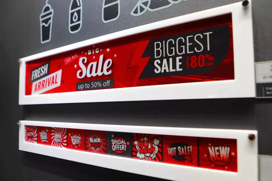 亮相27.3英寸与27.7英寸的三色电子纸,以黑色、白色与红色的醒目对比色,可为广告宣传、商品促销信息增加吸睛效果,适用于零售商店、百货卖场等商业情境,为商业广告显示屏提供新选择。