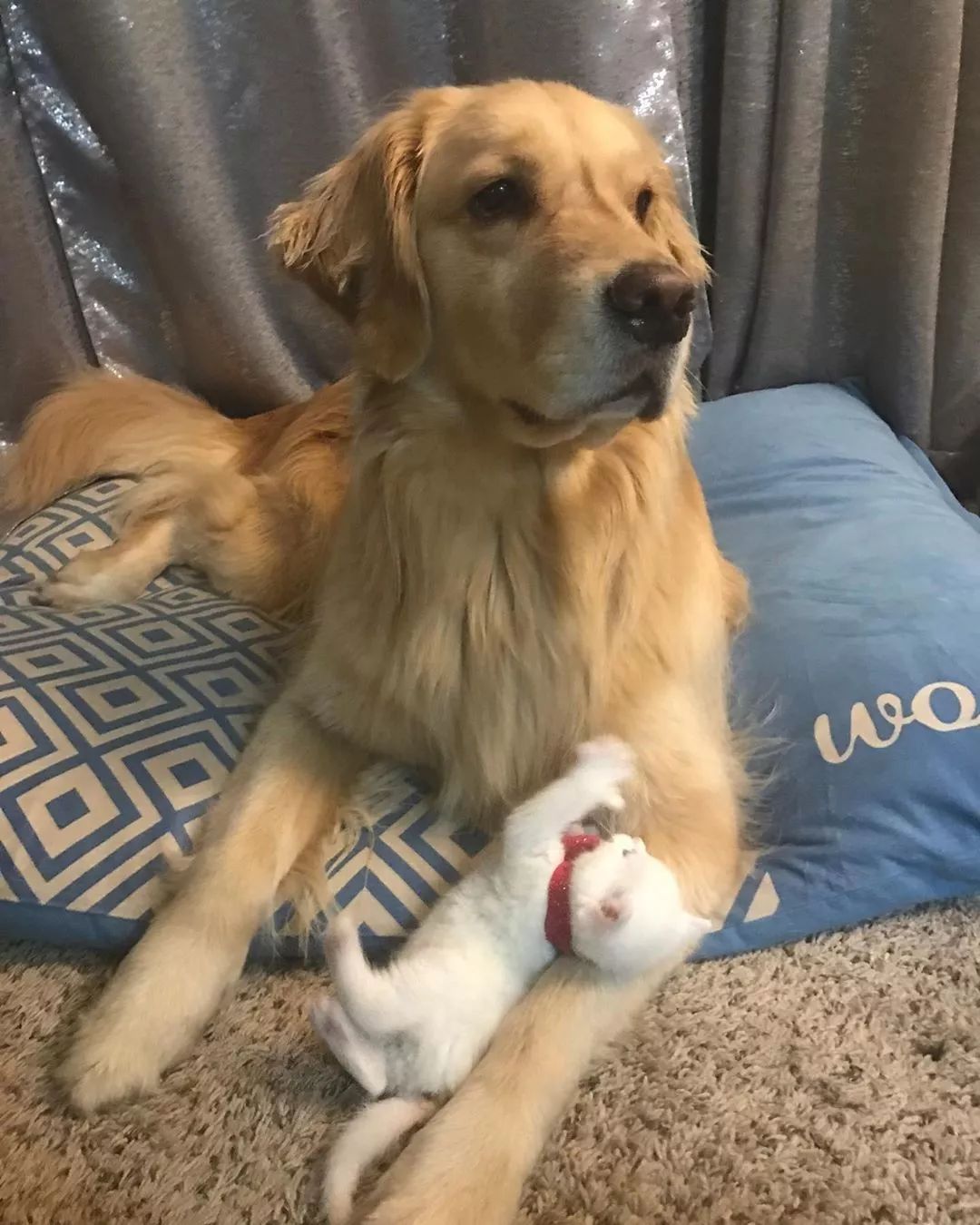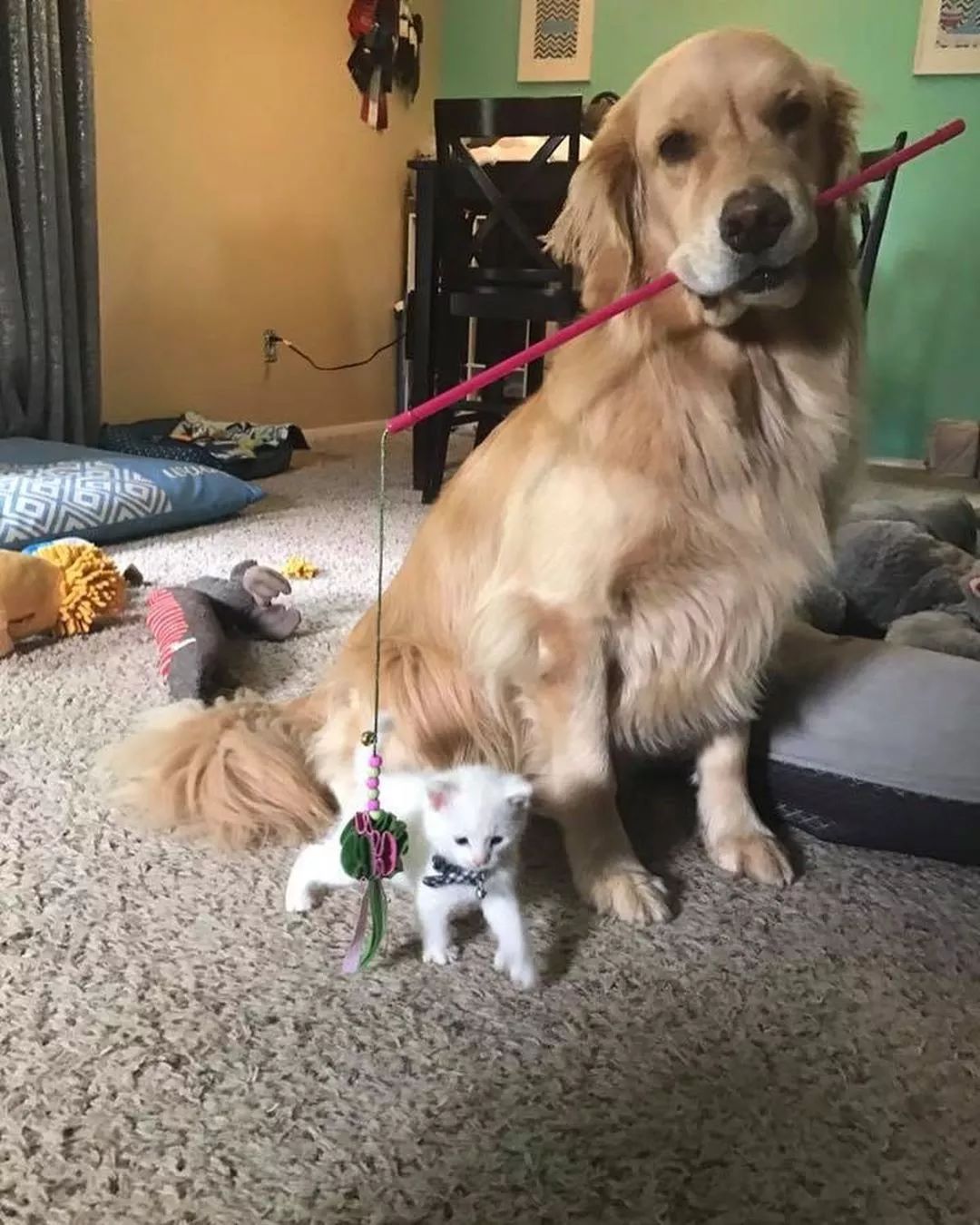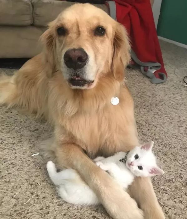 大金毛Mojito就是小猫Skywalker的守护神。