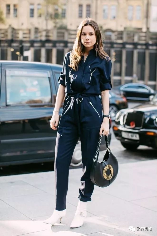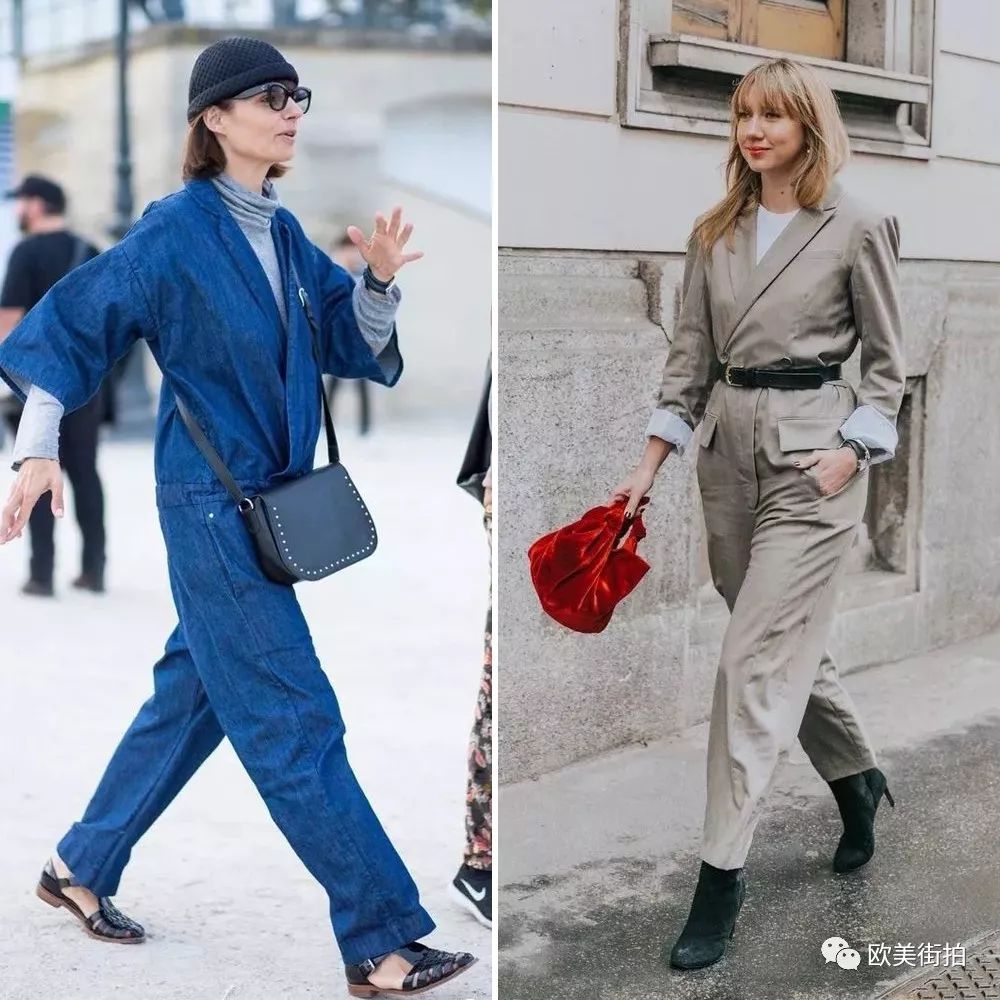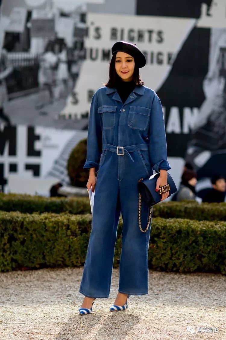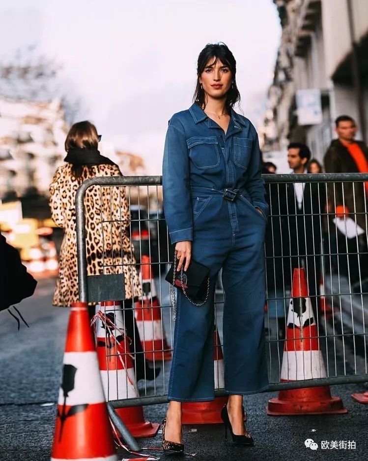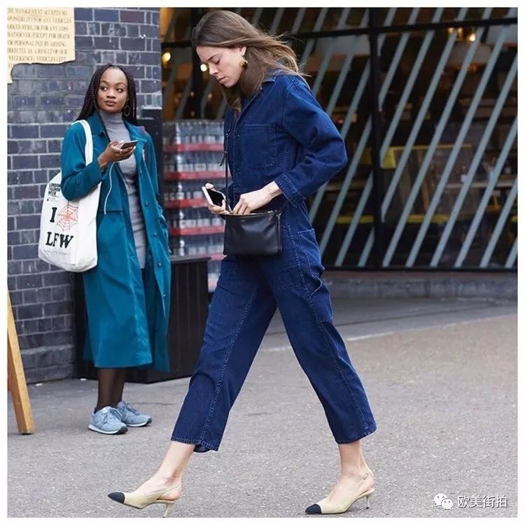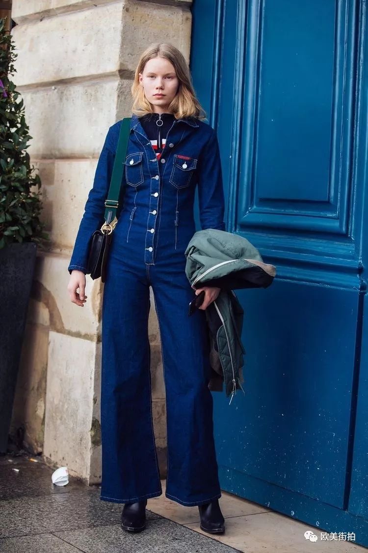 牛仔装的连体裤最常见,矮个儿姑娘们要是喜欢可以选高腰设计的九分连体裤会比较合适,穿双猫跟鞋正好!