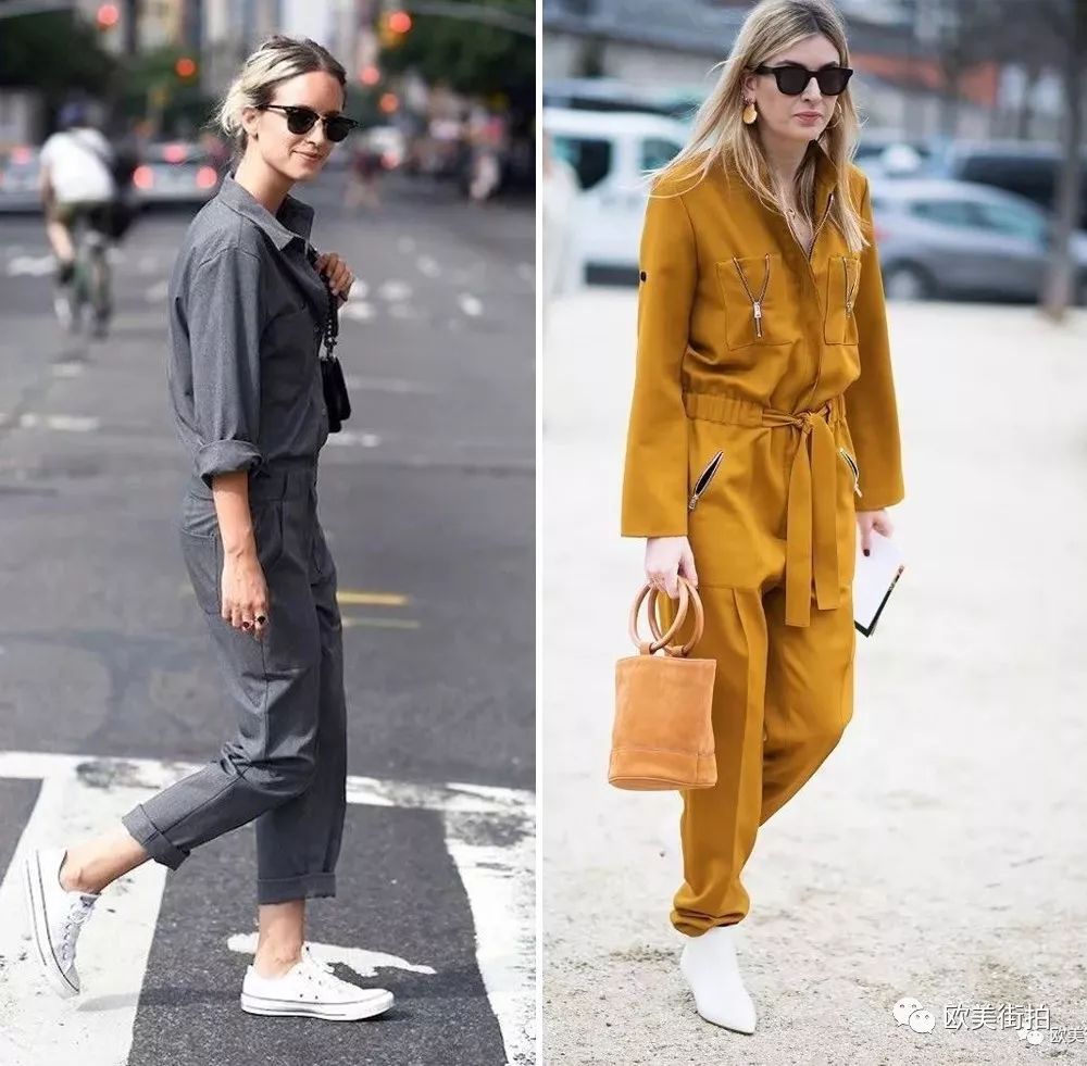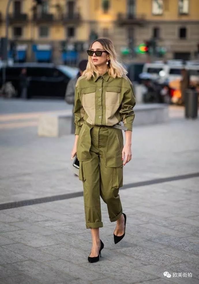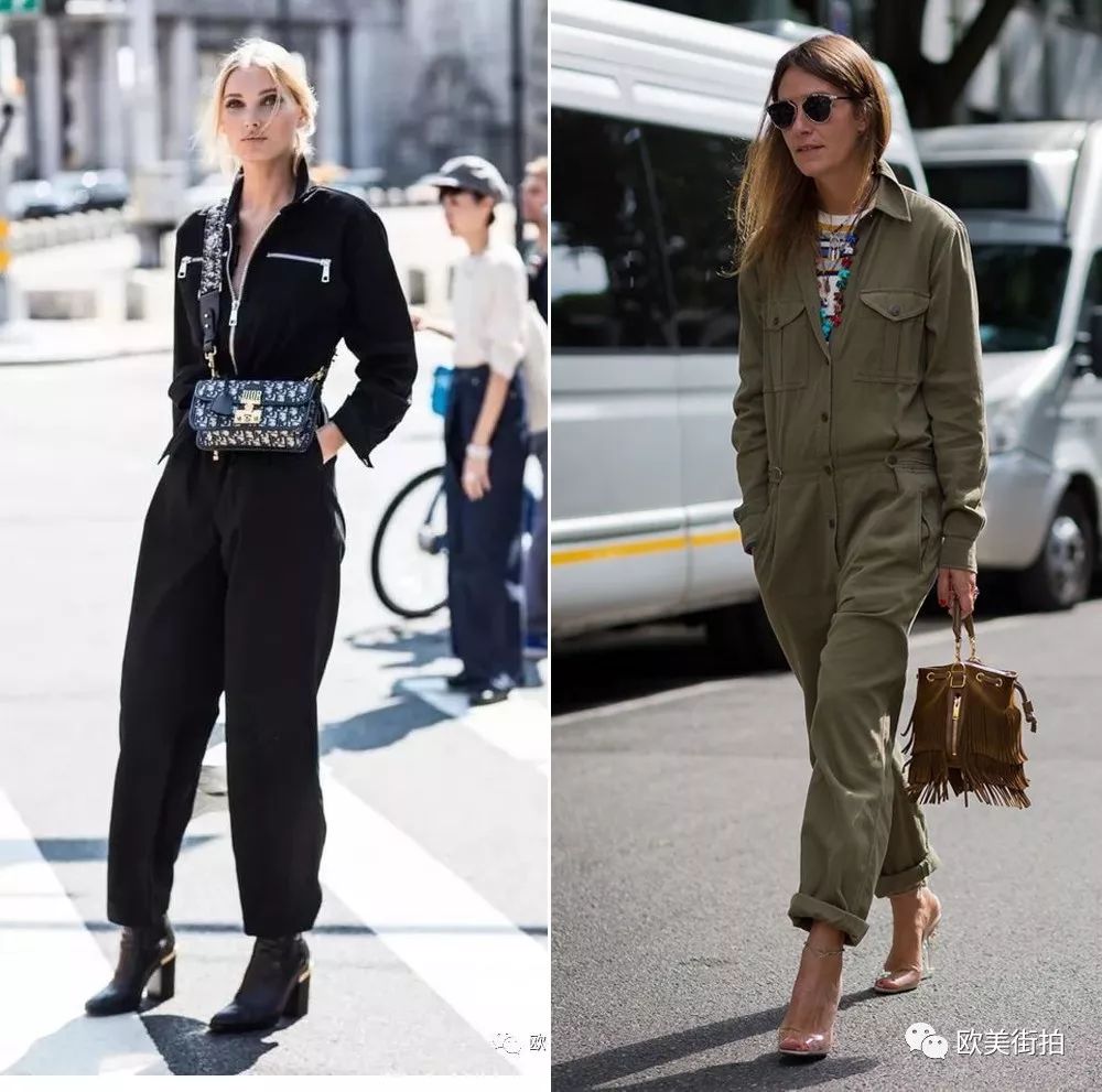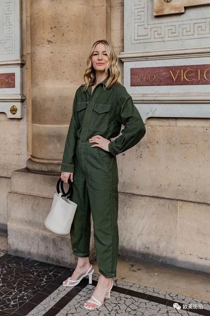 除了无色彩系的连体工装裤,秋天也可以选择下面的军绿色和驼色系列的连身工装裤,对于秋天而言,中性的色调更适合!