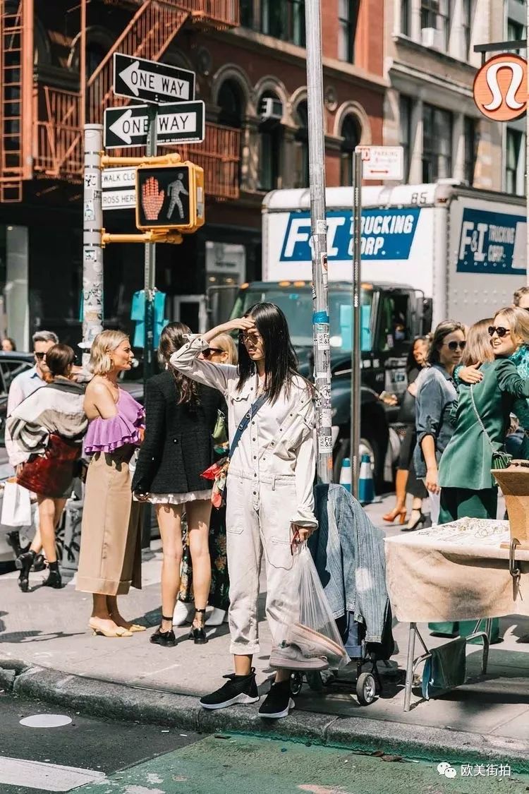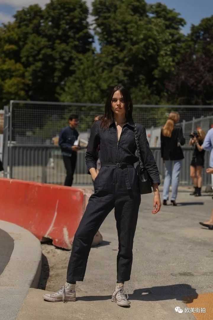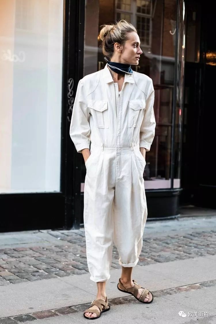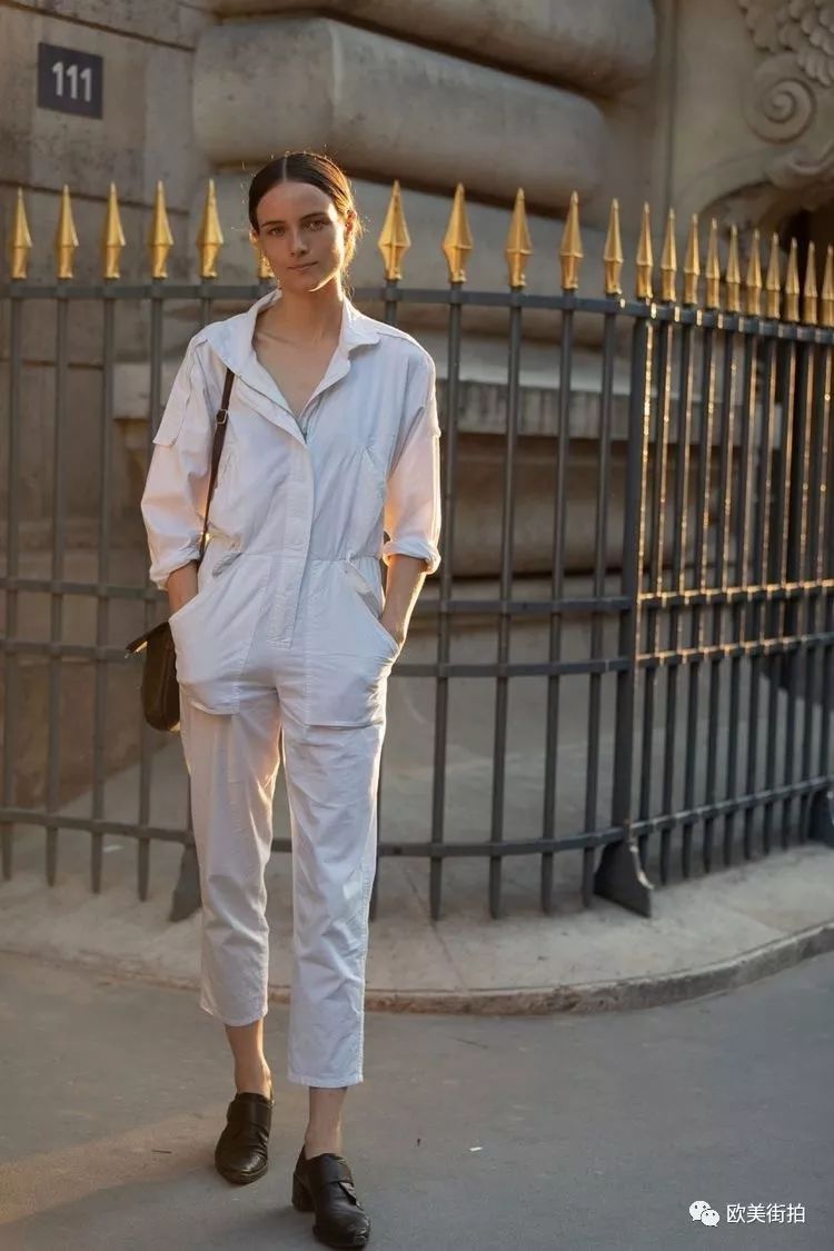 一身牛仔面料的白色连体裤,穿着合身就好,不用买大一号或者紧身的,挽个裤边穿双平底鞋或者帆布鞋,街头随意休闲的焦点全是它!