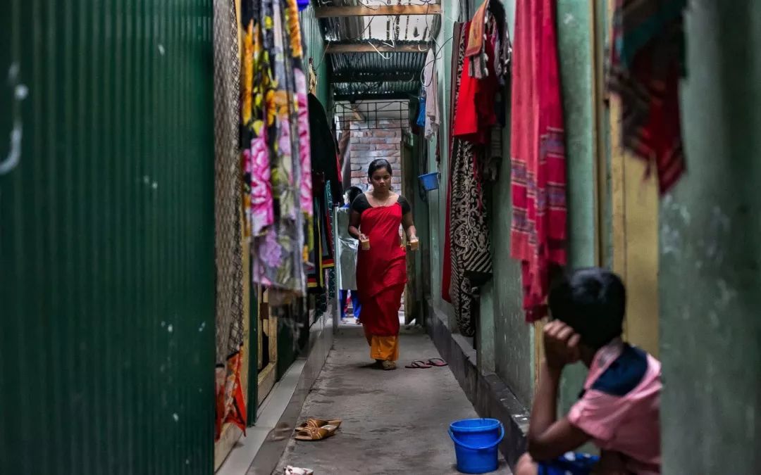 星期二早上九点半,在鲁帕没有窗户的卧室外,孟加拉妓院走廊里已经弥漫着香料和汗水的味道。男性们在浅色的混凝土小巷和狭窄的街道寻找他们所选择的女孩,只需200塔卡(约15元)便可进行十分钟的性活动。坎迪帕拉是孟加拉国约20个合法妓院“村庄”之一,大约400名性工作者在发霉的粉色和绿色混凝土墙内工作。