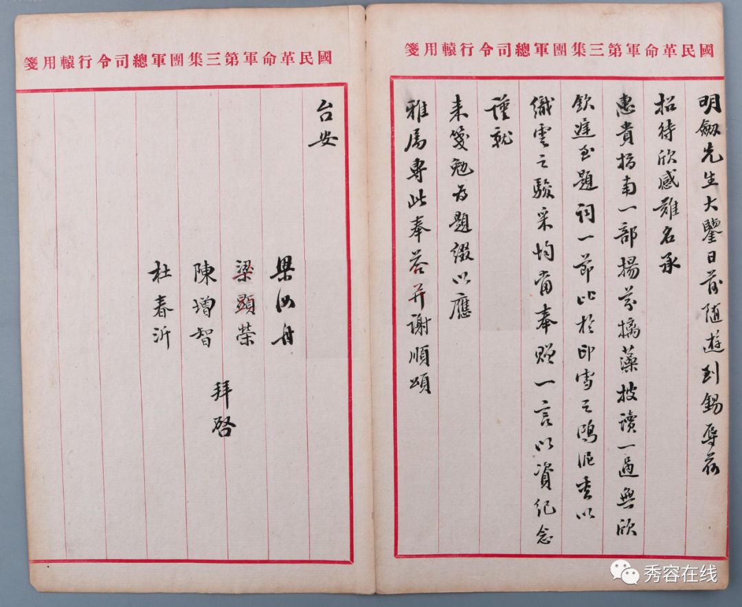 国民革命军第三集团军总司令行辕用笺:杜春沂等拜启