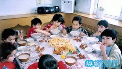 孩子们围坐在一块儿吃饭