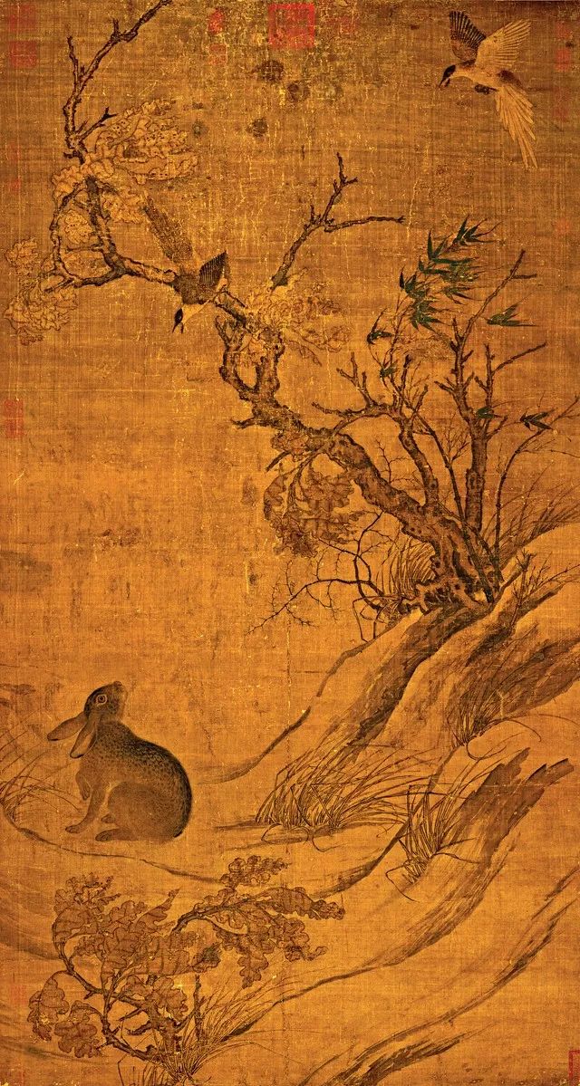 作为宫廷画家的崔白,只能在《双喜图》中寄予对公主和梁怀吉的深深同情,画中两只喜鹊比喻福康公主和梁怀吉,而那只惊惶无助的野兔,则暗喻他们的“敌对者”李玮。
