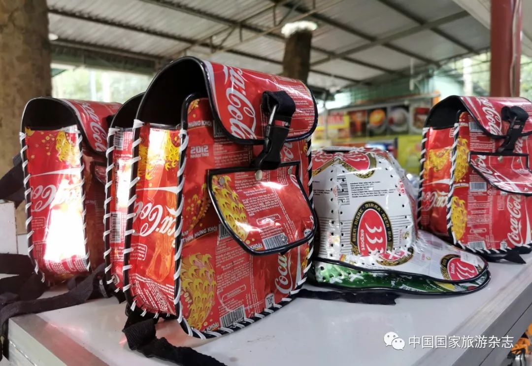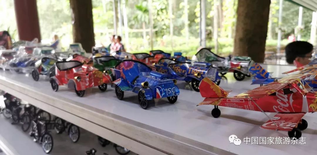 在丛林中,还有废弃的坦克和大炮,有模拟的战时场景。 但是吸引了更多人目光的,却是这一组以易拉罐铁皮制做的手工艺品。 它们从一个侧面也展示了战时勤俭节约的优良传统吧。
