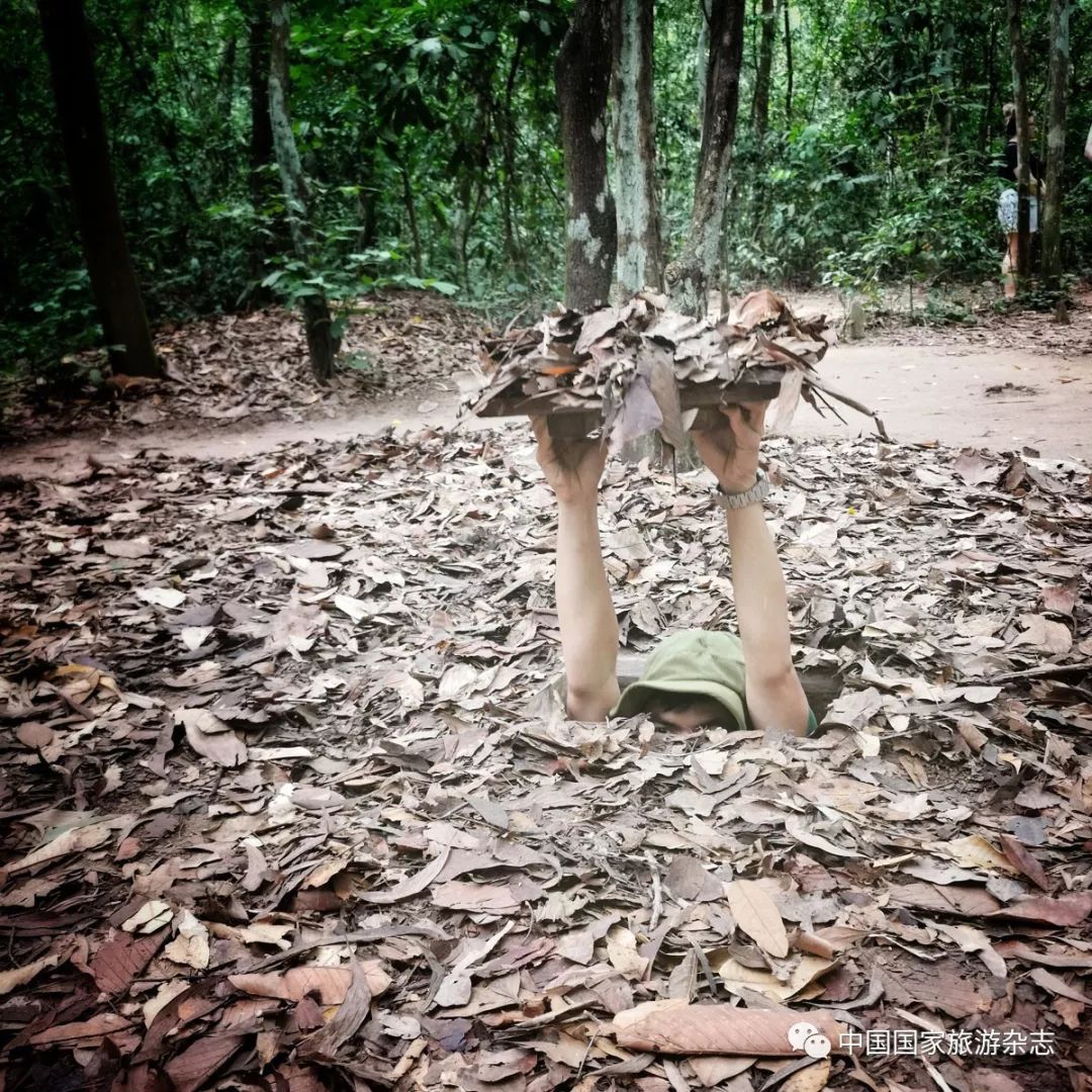 在西贡河上乘风破浪、大约1个小时左右,就到了古芝地道景区码头。 进入景区,也就是进入了一片雨林——战争时期,越南军民就是在这片雨林中,凭借地势构建出了这一套神奇的地下系统。 地道的入口十分隐蔽,倘若不是导游指明和现场演示,你绝对想不到在不起眼的落叶堆中,隐藏着战斗的杀机。